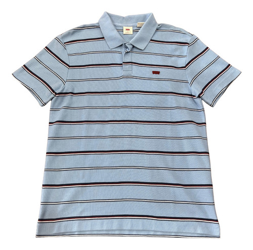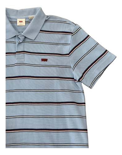 Camisa Polo Levis Listrada Azul Claro Vinho Logo Batwing