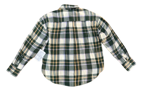 Modelo xadrez em tons de verde, bege e branco, com corte levemente acinturado e tecido 100% algodão, confortável, moderno e fácil de combinar.