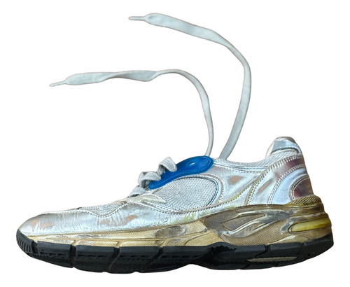 Acabamento Vintage: A marca é famosa por aplicar um tratamento hand-distressed (feito à mão) na sola e no cabedal, conferindo um visual propositalmente usado e único a cada par, conforme visível nas fotos (solado amarelado e efeito levemente craquelado/desgastado no couro prateado são de fábrica).