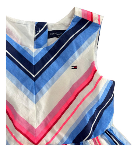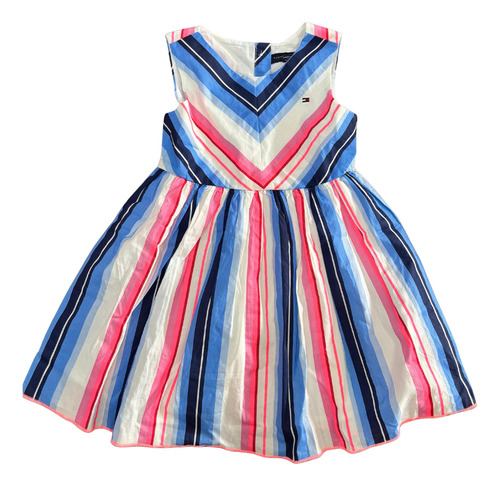Vestido infantil da marca Tommy Hilfiger, novo. Modelo listrado em tons de azul, rosa e branco, com saia rodada e costas fechadas. Tecido de qualidade, conforto para usar no dia a dia ou ocasiões especiais.